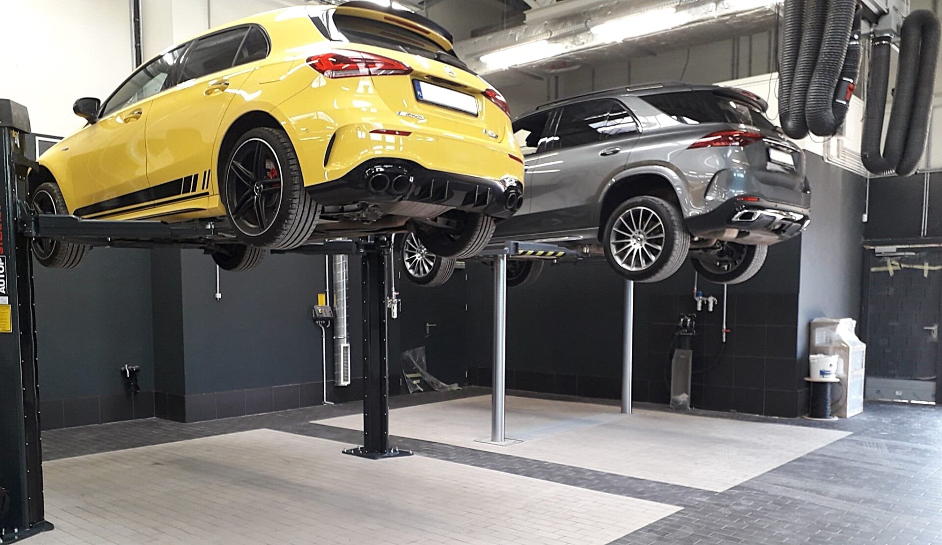 W części warsztatu serwisu Mercedes Warszawa zamontowaliśmy: 7 podnośniki podpodłogowe dwustemplowe MASTERLIFT Saa 260, 2 podnośniki podpodłogowe...