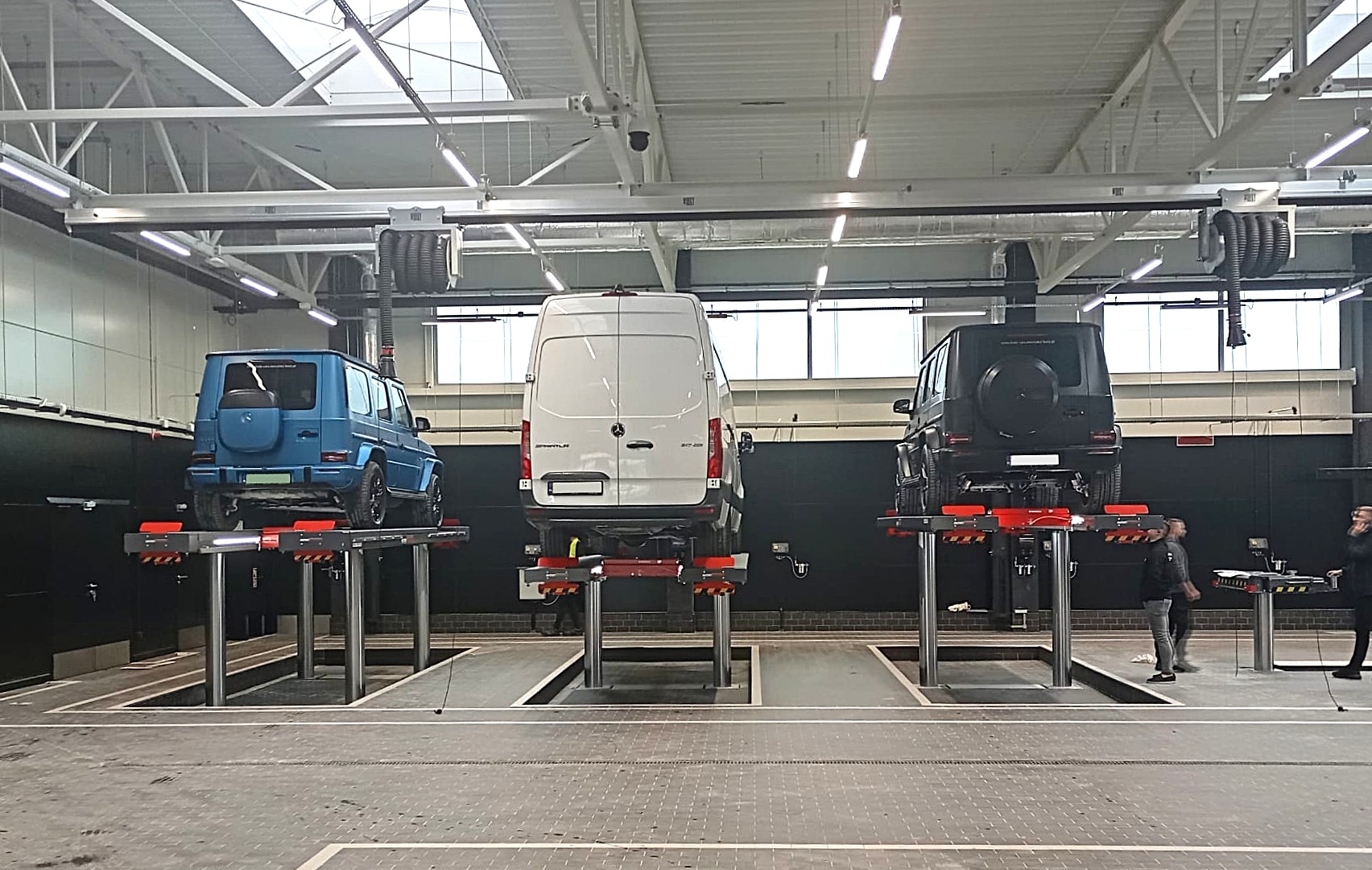 W części warsztatu serwisu Mercedes-Benz Leszno zamontowaliśmy: 4 podnośniki podpodłogowe dwustemplowe MASTERLIFT 2.35 NxT Saa 260, 3 podnośniki podpodłogowe...